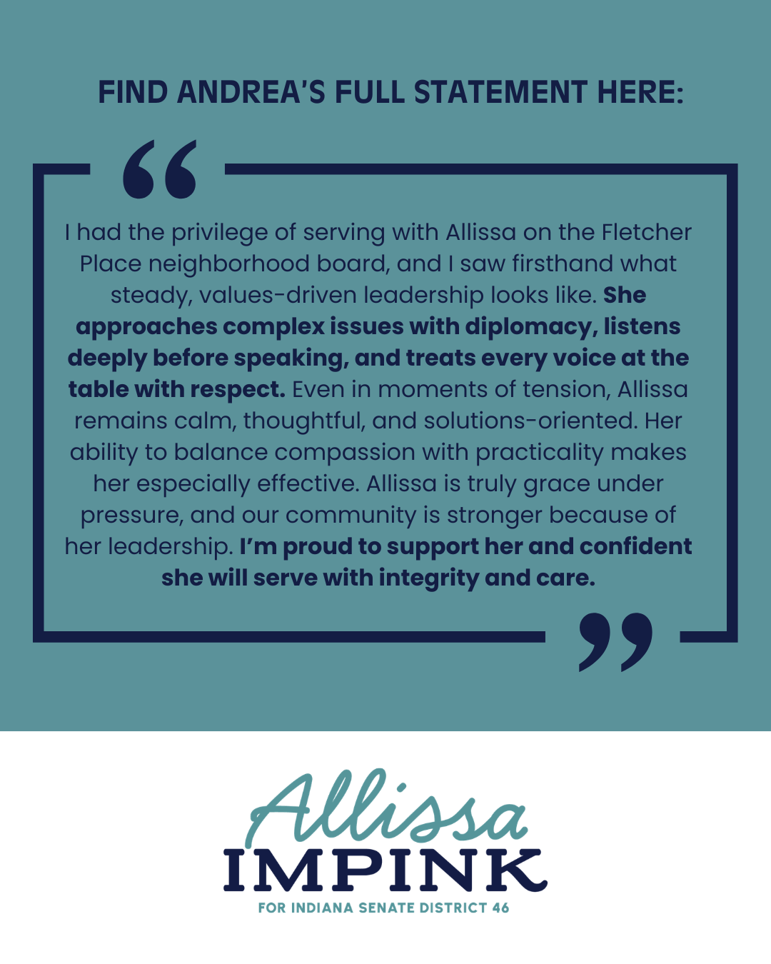 Read why neighbors and friends of District 46 are supporting Allissa. Are you a strong supporter of Allissa Impink?